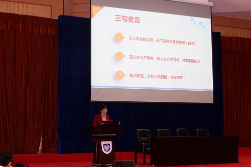 2016年10月10日中午,太阳集团tcy8722在科技会堂二楼报告厅举行安全专题教育讲座,由党委副书记邓艳华主讲,公司三牌楼校区全体员工干部聆听了本次讲座。