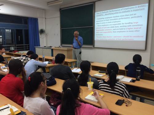 为了大家更好地了解美国老员工的学习与就业情况,Qadir Mohiuddin教授又针对美国企业的绩效考评制度为大家讲解。通过对一系列具体案例的展示与阐述,Qadir Mohiuddin教授将一个立体的美国社会展现给了大家。同学们热情高涨,纷纷表达自己的看法并结合自身情况向Qadir Mohiuddin教授提问。