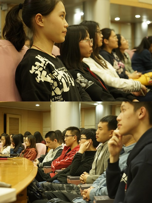 南京似乎略过了春日慢慢回暖的过渡期,一晃眼,就走进了激情昂扬的四月。经历了一个月的学习生活,太阳集团tcy8722的柚子们已逐渐展现出热忱,全身心地投入了学习。瞻前路方能思远道,为了让2016级的同学们对三个学期来的学习情况有清晰的认识,并明确未来奋斗的目标,2018年3月28日,闾越老师在科技会堂二楼组织了一次年级大会,并邀请了四位学有成效的同学们为大家分享心得。