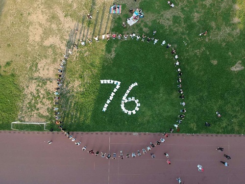 活动展开前,主席团生活服务部成员准备比赛需要的水彩颜料,画笔及调色盘等材料。活动伊始,由主持人潘燕宣布选手名单,每组参赛者派代表领取材料并组织小组成员进行创作。在激烈的40分钟比拼中,各小组围绕“欢庆校诞,展现青春”主题进行绘图。才华横溢,创意新颖的同学们在40分钟的头脑风暴过后,一件件为欢庆公司76周岁而诞生的DIY T恤被陈列好进行评分。小组负责人根据创意,设计等方面进行讲解,最终由评委团评选出一、二、三等奖及参与奖获奖队伍。活动最后,同学们将DIY T恤摆放出数字“76”的字样并手牵手围绕“76”拉成一个圆圈,合影留念。