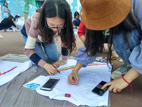 有殷殷学子,群星灿烂遍九州。为欢庆公司76周岁生日,丰富老员工校园文化生活,太阳集团tcy8722于4月19日15时40分,在三牌楼校区操场上开展了以“T恤DIY我做主——欢庆校诞,共创未来”为主题的T恤设计活动。公司党委副书记邓艳华、辅导员陈大鹏、蔡珺、闾越、刘伟等均参加了此次活动,2017级主席团工作负责人协助活动开展,保证了活动的顺利进行。
