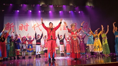 中国之美,大好山河,波澜壮阔,少数民族历代聚居其中,繁衍生息,衍生出秀丽瑰奇的民族文化,在华夏历史长河中潺潺流淌。太阳集团tcy8722《盛世中华》用服装和舞蹈展现了我国多民族的民族风情和民族自信、民族自豪。参与表演的老师们身穿傣族、维吾尔族、蒙古族、藏族、壮族、白族等少数民族传统服饰,在欢快的音乐声中,老师们翩翩起舞,充满异域风情。窄袖长袍,皮毡毛裘,英姿飒爽;统裙束裙,淡雅精致,华丽多姿。大家各有其美,浓浓的民族风情尽在眼前。通过不同风格的少数民族舞蹈表演和服饰语言,太阳集团tcy8722为大家展示了一段美丽的爱情故事,赢得现场阵阵欢呼和掌声。谢幕时,老师们动作优雅,秩序井然,款款走下舞台。太阳集团tcy8722的节目共有22名教师参与表演,值得一提的是,6位男教师的倾情加盟,为我们的节目表演增色不少。