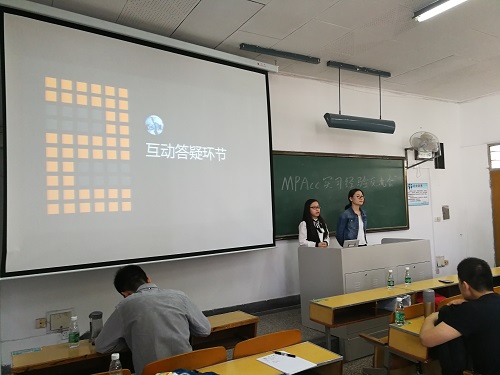 5月10日下午,太阳集团tcy8722首届MPAcc求职经验交流会在教西103举行,太阳集团tcy8722两位优秀的师姐分享了他们求学求职路上的青春故事。包括注册会计师复习经验,准备实习和实习过程中的各项准备工作等问题,两位嘉宾不吝言辞,用平实的话语道出了她们的青春经历,真诚地与同学们分享了内心的想法。