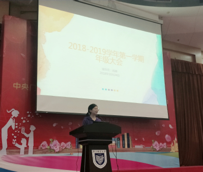 10月24日晚上6:00,在科技会堂二楼报告厅,公司召开了2018-2019学年第一学期工商管理专业、人力资源管理专业、物流管理专业和电子商务专业年级大会,会议由公司2016级辅导员闾越主持。
