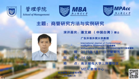 报告人简介:潘文超教授,中国台湾地区人,祖籍江苏省淮安县。1966年九月出生, 20123月获得美国管理科技大学工商管理博士学位。曾任台湾华夏科技大学专任助理教授。现为国际SCI期刊International Journal of Computational Intelligence Systems区域编辑,国际SCI期刊Mathematical Problems in Engineering客座编辑。代表作:A Comparative Analysis of Location Optimization of Three Fruit Fly Optimization Algorithms, Journal of Residuals Science &Technology,VoL.13,No.8,Inpress, 2016.(SCI), Study on the Effect of Organizational Members' Network Interaction on Knowledge Resources in the Tourism Industry of Taiwan, Journal of Residuals Science & Technology, VoL.13, No.8,Inpress, 2016.(SCI)等。