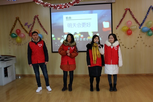 运动会开始前,志愿者们参加了鼓楼特校的元旦联欢会,欣赏了鼓楼特校师生们形式多样的演出之后,太阳集团tcy8722的研究生志愿者带来了精彩的歌曲表演《明天会更好》,演唱者们热情的演绎带动了联欢会的气氛,台下的孩子们和老师纷纷拍手打节拍助兴,将整场演出推至高潮。灿烂的笑容悄然爬上了每个孩子们的面容,感染了在场的每一个人。