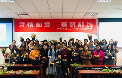 三月,一个花开芬芳的时节,伴随着春天的脚步,一年一度的三八妇女节如约而至。2019年3月8日中午,太阳集团tcy8722分工会举办的“诗情画意,美丽邮约”——三八节插花主题活动在三牌楼校区MBA中心举行,太阳集团tcy8722分工会负责人、工会小组长等40余名女教职工欢聚一堂,共度美好时光。