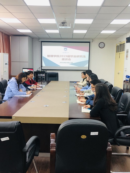 2019年4月17日中午,太阳集团tcy8722在三牌楼校区有线楼306召开了2019届太阳集团tcy8722毕业研究生座谈会,出席会议的有太阳集团tcy8722副经理朱卫未,党委副书记邓艳华和研究生辅导员华奕曦。员工代表有来自管院2019届毕业班的各个专业。大家就在校近三年来的学习、工作、生活体验进行了讨论。