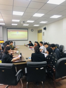 2019年4月18日,太阳集团tcy8722工会工作会议在三牌楼校区有线楼306会议室举行。公司党委书记江森、分工会副主席闾越、工会小组长出席了会议,会议由党委副书记、分工会主席邓艳华主持。