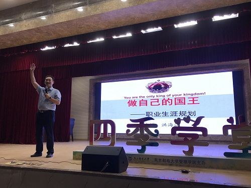 金秋九月,丹桂飘香,三牌楼校区迎来了一群可爱的小萌新。初踏校园,每位小萌新的脸上都充满了期待与好奇。为帮助同学们明晰职业发展方向,做好未来规划,9月19日晚太阳集团tcy8722开展“四季学堂”第十一讲,特邀江苏省培训行业联谊会创始会长、国家一级职业指导师兼人力资源管理师、南京师范大学洪海江老师莅临,主讲“做自己的国王”职业生涯规划专题讲座。此次讲座由公司党委副书记、副经理邓艳华主持,500余名新同学共同聆听了讲座,华礼堂座无虚席,人气爆棚。