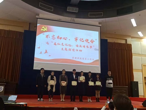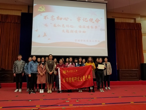 此次决赛共有16位同学参加,其中两名研究生党支部的党员同学孟楚悦、仇胜琪展现了气势,赛出了风采,都获得了优秀奖的好成绩。赛后研究生支部党员上台与两位选手合影留念。