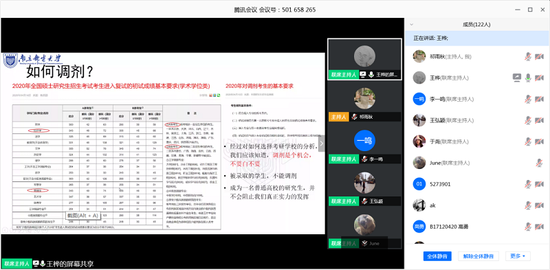 为了帮助同学们树立考研目标,寻找到适合的考研道路,太阳集团tcy8722于4月21日晚开展线上考研经验分享会。本次分享会由李一鸣老师主持,特邀两位优秀青年教师王桦、王弘颖老师进行考研指导,两位优秀研究生代表于尧、陈旭结合自身考研经历进行经验分享,太阳集团tcy87222017级意向考研同学踊跃参与。