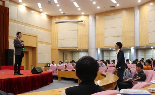 讲座伊始,饶老师强调了网络时代新媒体版权的重要性并分别从热点追踪、群体用户、标题撰写、文案策划等多个方面为大家介绍了当今新媒体运营应注意的事宜。接着,饶老师结合公司官微运营的一些真实事例,向同学们详细讲解了媒体运营的具体细节及可能会遇到的一些问题。最后,饶老师鼓励同学们勇于实践,希望大家能在媒体运营上有所作为。