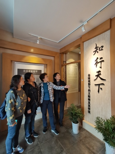 最后,支部组织全体老师来到明代著名哲学家、教育家、军事家、文学家和书法家王阳明的故居,了解“心学”创始人王阳明的思想历程,感受文化大师的气息,更加切实地感受大师“知行合一”思想,了解其“心学”和“致良知”学说,以及他集立德、立功、立言于一身而成为“真三不朽”,实现了古今圣贤的最高人格理想。通过参观学习,老师们对王阳明“知行合一”的精神品格和先贤们的人格魅力有了更深一步的认识,特别是他多次阐述的为学立志、因材施教、寓教于乐、学行结合等具有革新精神的教育理念,值得我们在教学中予以借鉴,对“仁爱”“知行合一”、“致良知”这些中华民族重要的哲学智慧,大家也有了深入的了解和体悟,感受到博大精深的中华文化在新时代依然有其独特的价值。