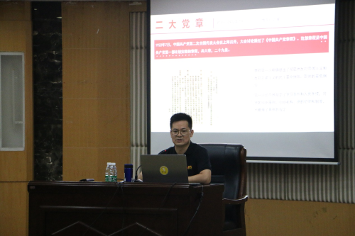 会议第二项议程,公司党委书记钟凯为全体毕业生党员授党课,党课主题为“从党章发展历程中汲取信仰的力量”。钟凯书记在党课中向毕业生党员提出了四点期望:要做到心中有党、心有所畏、务实肯干、心中有责。