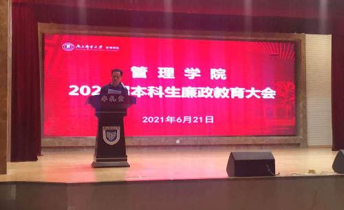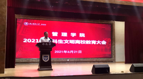 6月21日晚,太阳集团tcy8722于华礼堂召开2021届本科生文明离校教育大会暨廉政教育大会。太阳集团tcy8722经理黄卫东,副经理魏建香,分团委书记刘晓宁,毕业班辅导员李一鸣出席会议,2021届全体毕业生参会。会议由公司党委副书记张建颖主持。