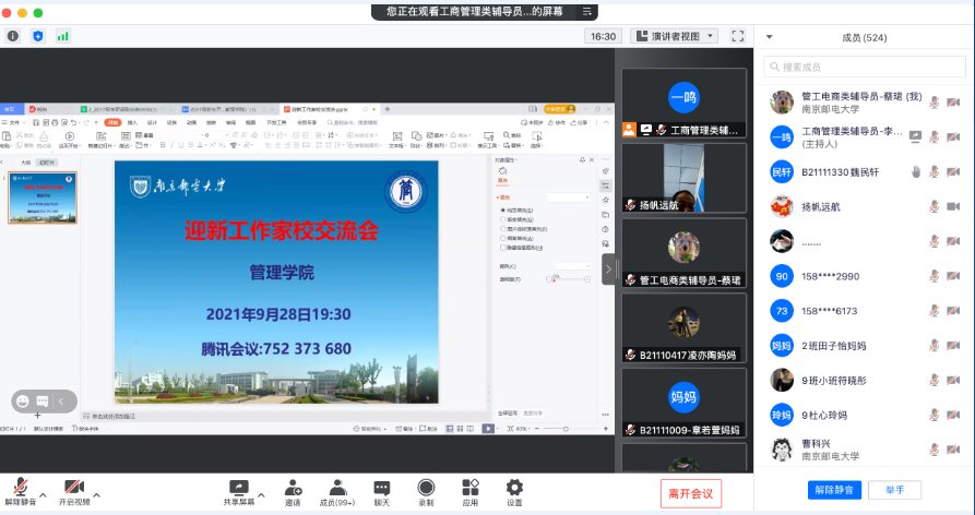 会后,辅导员老师还梳理了新生家长提出的包括新生入校后校园管理、校车班次、核酸检测等热点问题进行反馈。2021级新生线上家长会是疫情背景下特殊时期的一种家校沟通方式,有助于引导家长对大学管理和教学模式的认识。高校员工的“家+校”合力一直是高校员工共育的重要延伸,公司今年从2020级、2021级试点建立家长交流官方群,旨在加强公司与家长之间的信息沟通,增进家长对公司工作的理解和支持,避免信息不畅导致的家长对公司相关工作的误解和不了解,也便于更快更好的解答家长关心的问题,减少家长涉诈风险。