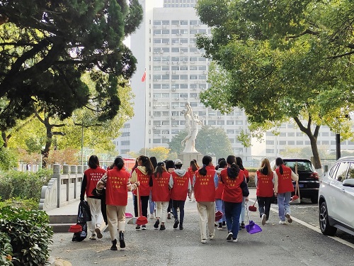 在活动开始前,同学们热情高涨,踊跃报名,在短短3分钟内,60个志愿服务名额一抢而空。活动现场,同学们按照事先分工,捡拾杂物、清扫落叶、集中处理垃圾,大到主干道的清扫,小到石凳下的一片落叶,大家井然有序,高质高效地进行劳动。浓浓秋意下,一抹鲜艳的志愿红在景色怡人的三牌楼校区显得分外靓丽。通过同学们的共同努力,三牌楼校区更加整洁美丽,活动不仅大大减轻了环卫工人的负担,也为三牌楼的秋日风光增添了一份雅致。