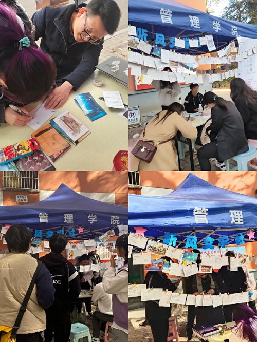 为进一步促进同学之间的互相交流,给同学们提供一个独特的交流平台,增强同学之间的联系,提高同学们的归属感,管理公司听风文学社于11月24日、25日在三牌楼校区开展“小雪心语”明信片漂流活动。本次明信片漂流主题是:小雪心语。