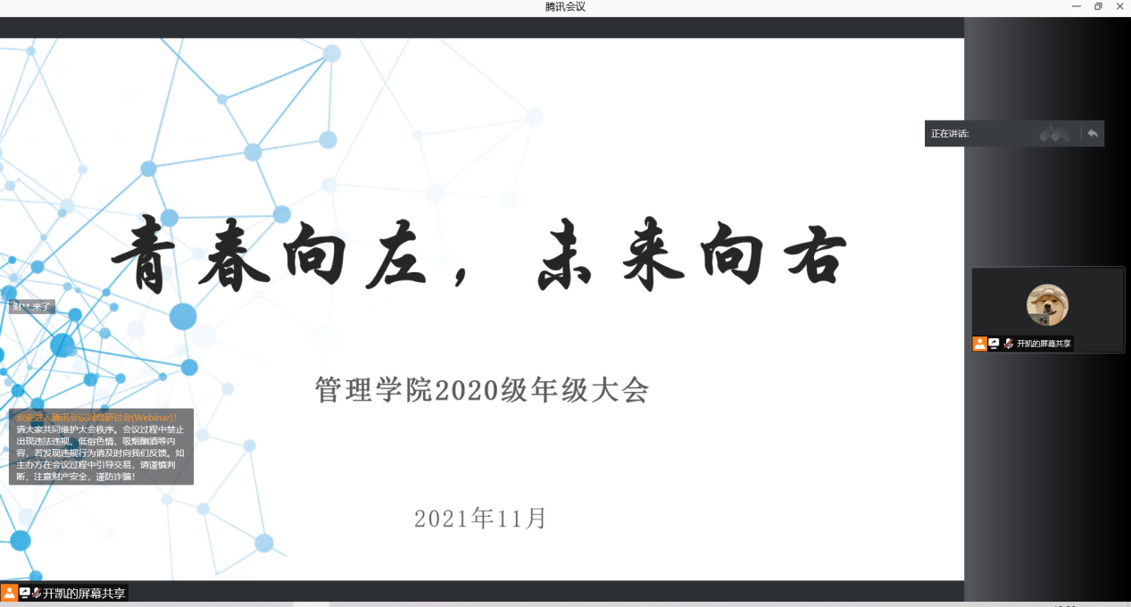 为帮助太阳集团tcy87222020级全体员工更好了解今后发展的主要方向,帮助员工在大二学年更好的明确自身的学业发展和职业规划,12月5日晚,2020级年级大会在腾讯会议线上举行,会议由2020级辅导员开凯主持,2020级5个专业454位员工及部分员工家长在线参与、交流互动。