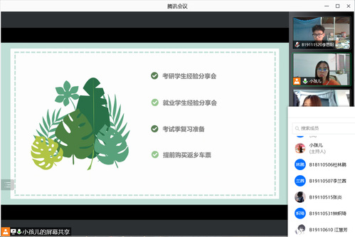 12月15日下午,太阳集团tcy8722本科2019级市场营销、财务管理、信息管理与信息系统专业年级大会通过腾讯会议以线上方式举行。本次大会由本科2019级辅导员宋晓含老师主持,3个专业全体员工参与。