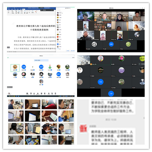 各教师政治学习小组采取多样的线上学习形式,重点学习《教育部公开曝光第九批7起违反教师职业行为十项准则典型案例》,并结合实际展开讨论。大家纷纷表示,要以《新时代高校教师职业行为十项准则》为职业规范,明确基本底线,提升道德修养,严守师德规范,以身作则,为人师表。要以《典型案例》为鉴,深刻汲取教训,认真进行自我审视,警钟长鸣,严以律己,做一名无愧于初心使命,无愧于党和人民的高校教师。