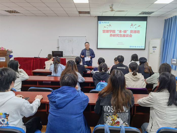 随后,几位21级、22级“本-硕”贯通培养研究生就选课、师生互选、开题、中期检查等环节进行了交流。建议学弟学妹们提前做好规划,主动联系导师,加入导师课题组,确定研究方向,及时交流思想上和研究上的动态。