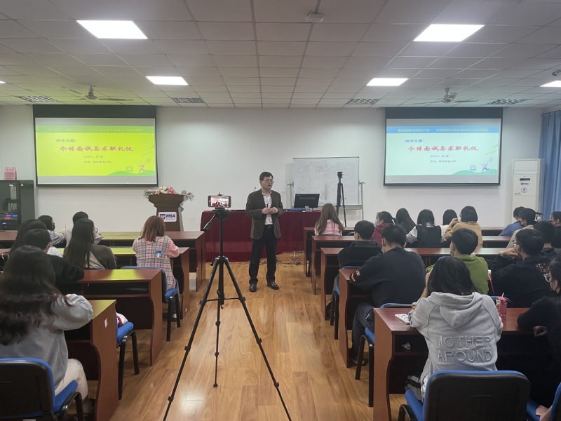 随后,郭书记就自我介绍、面试题型与求职礼仪三部分展开了具体的指导。自我介绍是面试者唯一自己能完全掌握的环节,他提醒同学们要敢于表达,提高自身语言表达能力。对于结构化面试、非结构化面试和半结构化面试中的题型,郭书记用详实案例帮助同学们构建面对问题的思考模式、答题方法,有效提升职业胜任力。求职礼仪是求职者的个人修养在求职过程中礼节礼貌方面的体现。郭书记对同学们反复强调了就业求职过程中,个人仪容、仪表的重要性,提醒同学们在求职过程中要适度“修整包装”自己,勤于提前准备、善于交流表达、敢于迎难而上、敏于抓住机会。