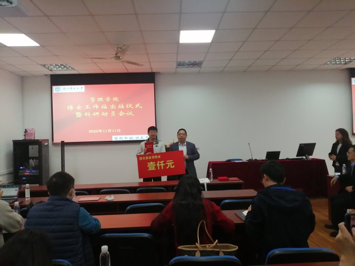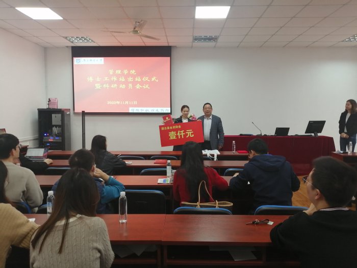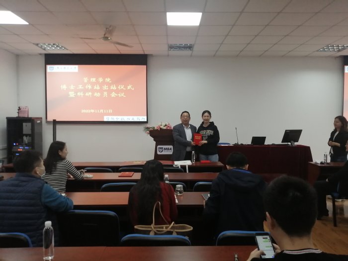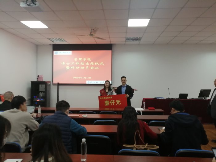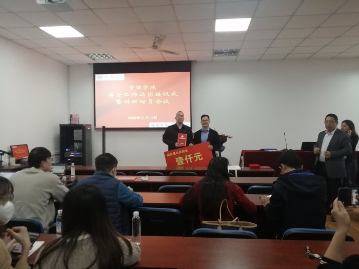 出站仪式上,钟凯和黄卫东分别为获得国家级项目的唐安安、朱琳娜、陈信同、夏晶等四位教师颁发奖金和出站证书,并为获得教育部项目的彭媛媛、刘虹、钱丽华等三位教师颁发荣誉证书。科研动员会议上,黄卫东发表重要讲话,他介绍了博士工作站的来历,希望通过博士工作站的成立,创造浓厚的科研氛围,激发青年博士的科研热情,提升青年博士的科研能力,从而形成太阳集团tcy8722的科研风格和特色。强调各位青年博士要重点关注党的二十大报告,聚焦党和国家事业发展全局中的重大理论和现实问题。公司将全力以赴为青年博士做好资源和制度保障工作,搭建发展平台。钟凯在讲话中对青年博士们提出了三点要求:一是希望大家不忘初心,围绕博士工作站的原名“先锋工作站”,在科研方面起到先锋模范作用;二是积极参与教学及公司其他活动,在教学、科研和其他活动方面形成合力和凝聚力;三是营造好博士工作站的环境和氛围,把工作站打造成太阳集团tcy8722的阵地、品牌和亮点。