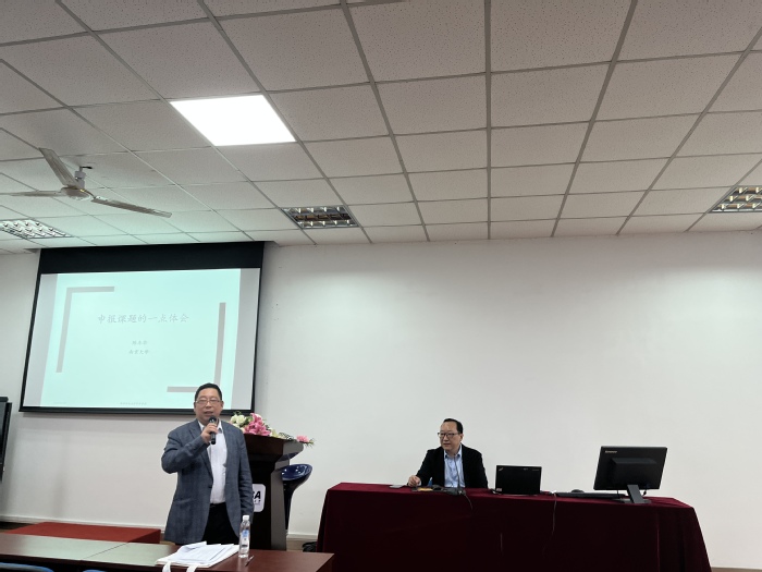 出站仪式和科研动员会议结束后,南京大学陈冬华教授应邀作了题为“申报课题的一点体会”的学术讲座,陈教授立足科研服务国家的宏观背景,结合自己的科研申报与研究经验,对申报书的撰写、课题的开展、课题的结题、国社国自的差别等作了全面的阐述。
