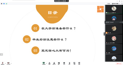 朱善鸿先生从员工在大学阶段,毕业后阶段及坚定信心三个方面展开如何进行工作准备的讲解。朱善鸿先生提出,在大学准备阶段,员工们应了解经管类专业的特点,积累实践经验,听取专家意见,为大学四年划定阶段和目标,增加通用技能的准备,学会与人打交道;在毕业后的阶段,员工们应了解就业环境,认清经济大环境和竞争日益激烈的就业市场,建议应届毕业生做好自我认知与合理规划,了解职场应具备的基本素养,提早培养职场需要的能力,端正心态,诚实守信。而后,朱善鸿先生提出,在市场广大,前景广阔的背景下,坚定信心,大有可为,并热情邀请同学们去公司实习交流。