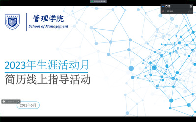 本次线上指导活动是公司2023职业生涯月系列活动之一,活动前期公司面向2024届全体本研毕业生组织开展简历大赛,全体2024届毕业生均提交了简历作品,经过公司初选将推报作品参与校赛和后续模拟面试等环节,通过相关的模拟环节,将帮助公司员工更好熟悉和掌握真实的求职过程,争取在今秋明春的招聘季有更好的表现。