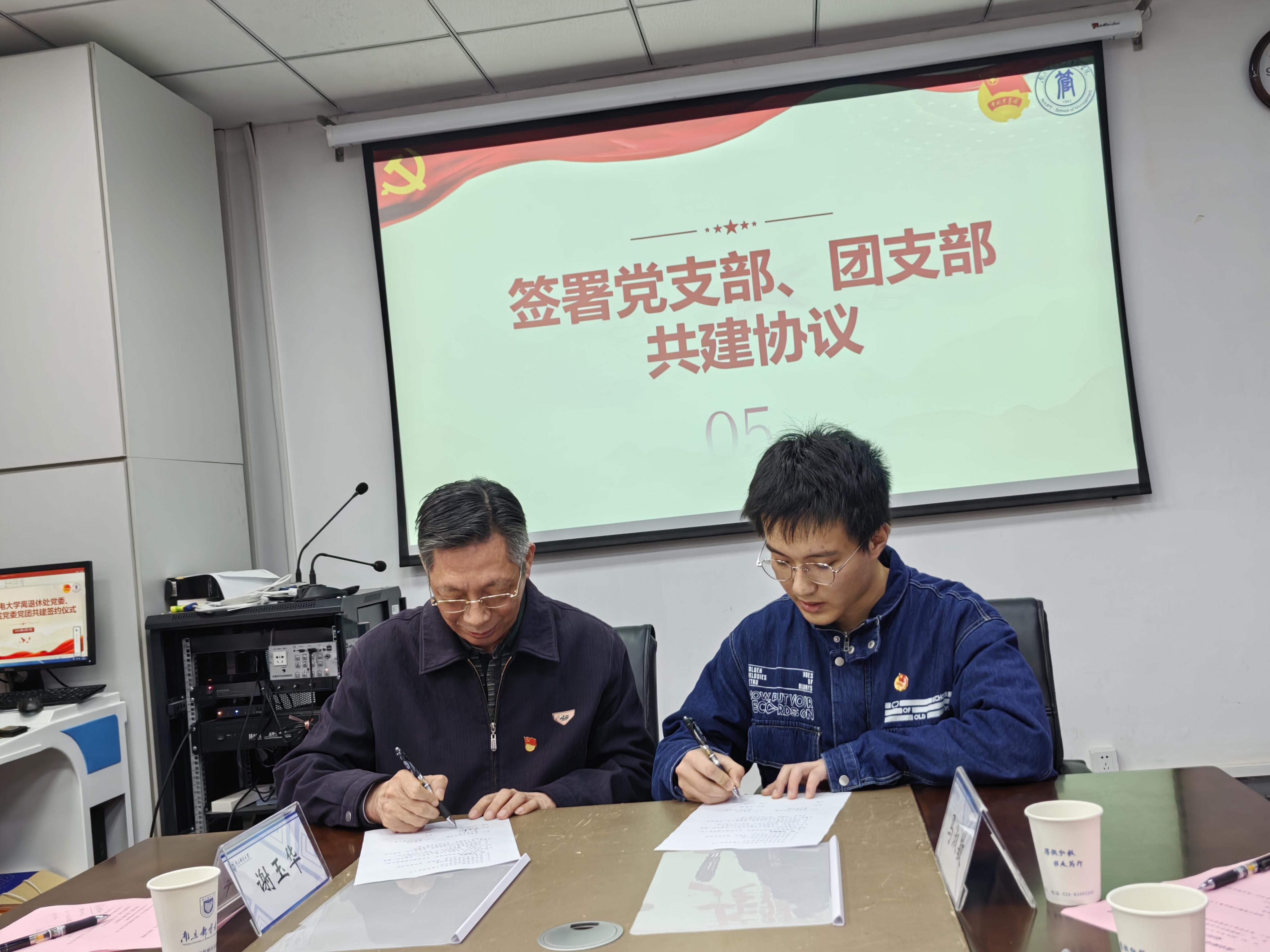 退休第五党支部书记孔宪禹老师和太阳集团tcy8722B231300班团支部书记汪喆明同学分别介绍了各自支部的优势和特点,并表示要不忘初心,牢记使命,永保优秀党员和先进青年团员的本色,通过共建共创活动,能够在思想上,行动上得到更好的锻炼和提高,使各自支部的标准化建设更上一层楼。两位支部书记在与会人员见证下签署了共建协议。