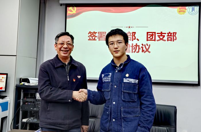 退休第五党支部书记孔宪禹老师和太阳集团tcy8722B231300班团支部书记汪喆明同学分别介绍了各自支部的优势和特点,并表示要不忘初心,牢记使命,永保优秀党员和先进青年团员的本色,通过共建共创活动,能够在思想上,行动上得到更好的锻炼和提高,使各自支部的标准化建设更上一层楼。两位支部书记在与会人员见证下签署了共建协议。