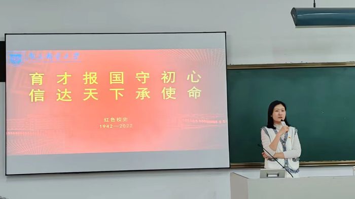 鲍捷老师以“育才报国守初心,信达天下承使命”为引导,梳理了南邮的光辉校史,讲述了战邮英雄的奋斗事迹。她指出,一代人有一代人的长征,不同年代的青年身上承担着不同责任。她强调,全体学员要从新时代中国特色社会主义文化中汲取力量,加强思想政治学习,培养良好学习精神,不畏艰难,专攻术业。党课的最后,鲍捷老师殷切希望青年一代以宏大历史观、发展观审视中国特色社会主义文化,继续传承和弘扬中华优秀传统文化,为中华民族的伟大复兴贡献力量。