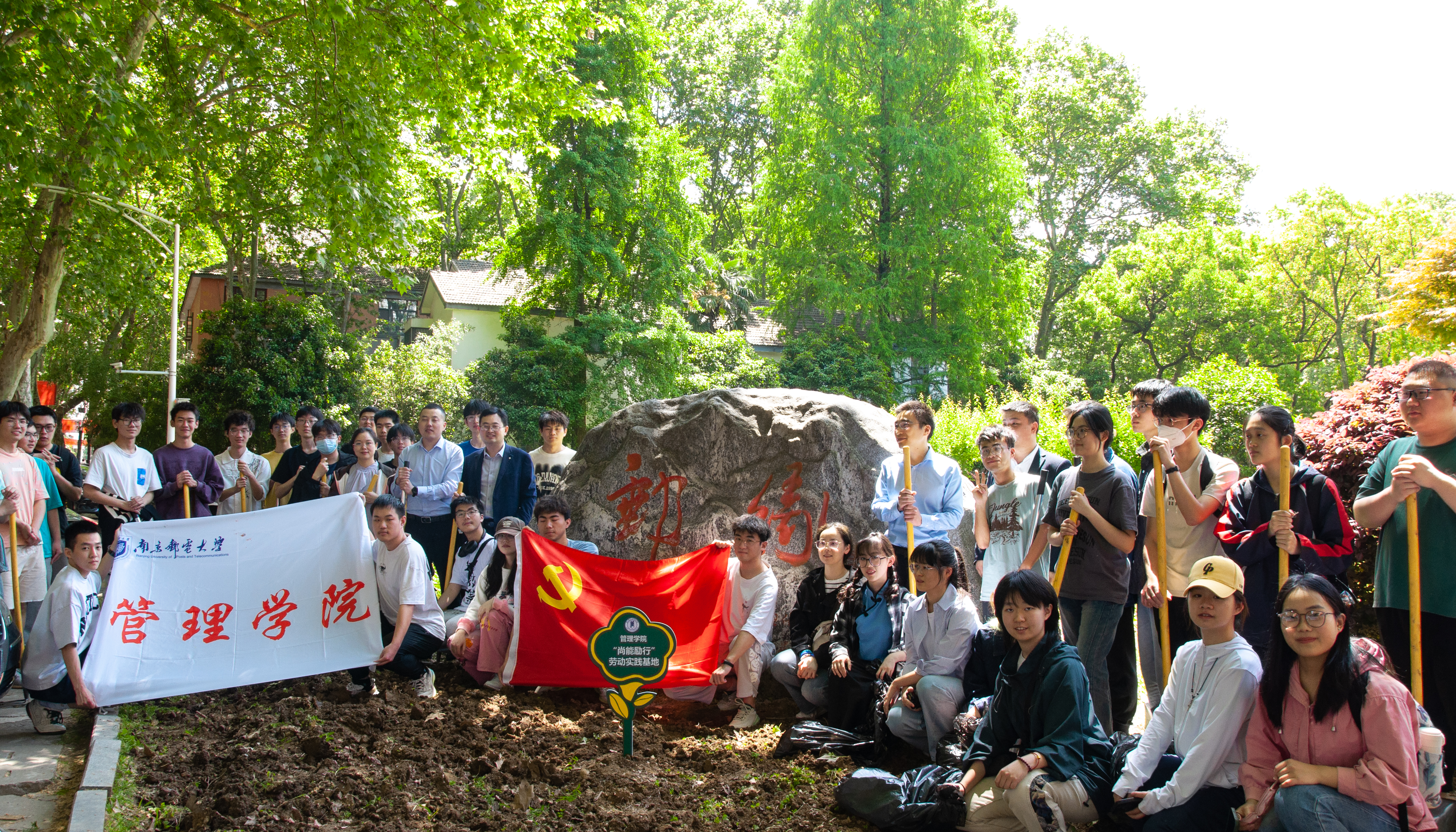 本次劳动实践挂牌仪式取得圆满成功,参与实践的全体同学集中于“邮缘”石前合影留念。党旗鲜红,笑容洋溢,翻新过的土地积蓄着新一轮的生命力。今后,在公司党委领导和校团委关怀指导下,将持续发挥劳动教育的育人作用,科学设计课内外劳动项目,组织实施好劳动日、劳动周、劳动月,以团支部、班级为单位规划园地、栽种花木、美化校园,为每一位学子提供丰富的劳动实践机会,在绿叶葱茏中播种家国情怀,在花木繁盛处收获美好未来!