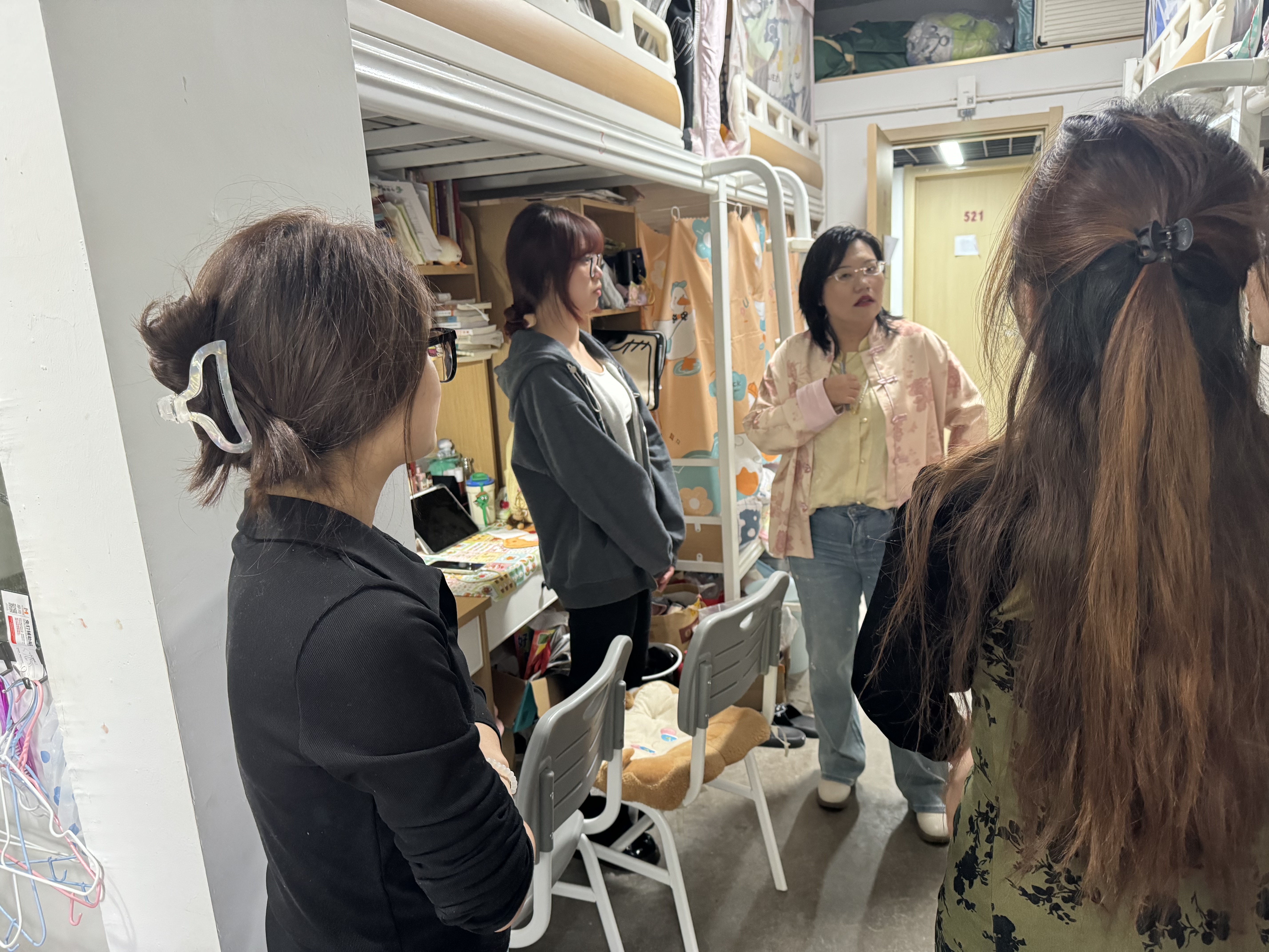 2024年4月,导师们深入联系大三员工宿舍,进行升学动员交流。导师们的到来不仅为同学们带来了温暖,更为大家的学习生活注入了新的活力。导师和同学们就大四考研、出国、就业等方面进行了交流,导师们耐心地倾听了同学们的心声,分享了自身的经历,对同学们关心的问题、遇到的困难提出了针对性的建议。导师们帮助大三的同学们坚定专业学习信念,明确学习目标,同时嘱咐宿舍同学之间和谐相处,相互促进,共同成长。