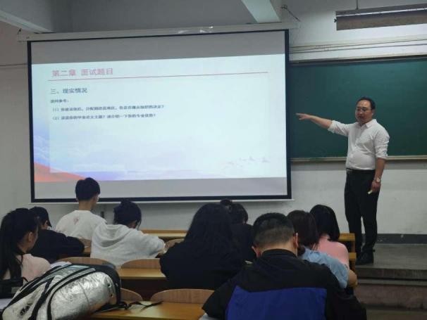 交流会上,老师分别从国家层面和个人层面对西部计划以及乡村振兴计划进行了简单介绍,并向同学们讲解了面试的具体流程、核心要点和面试礼仪等,强调同学们需要培养良好的心理素质、沟通表达能力与志愿服务精神。最后,老师引领同学们在自我介绍、如何回答面试问题以及面试进场离场礼仪三个方面进行了实战演练,现场模拟面试环境,为同学们答疑解惑。