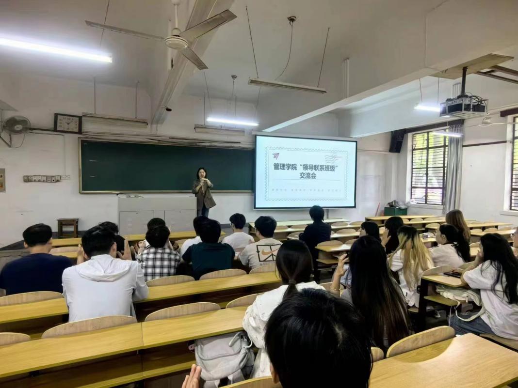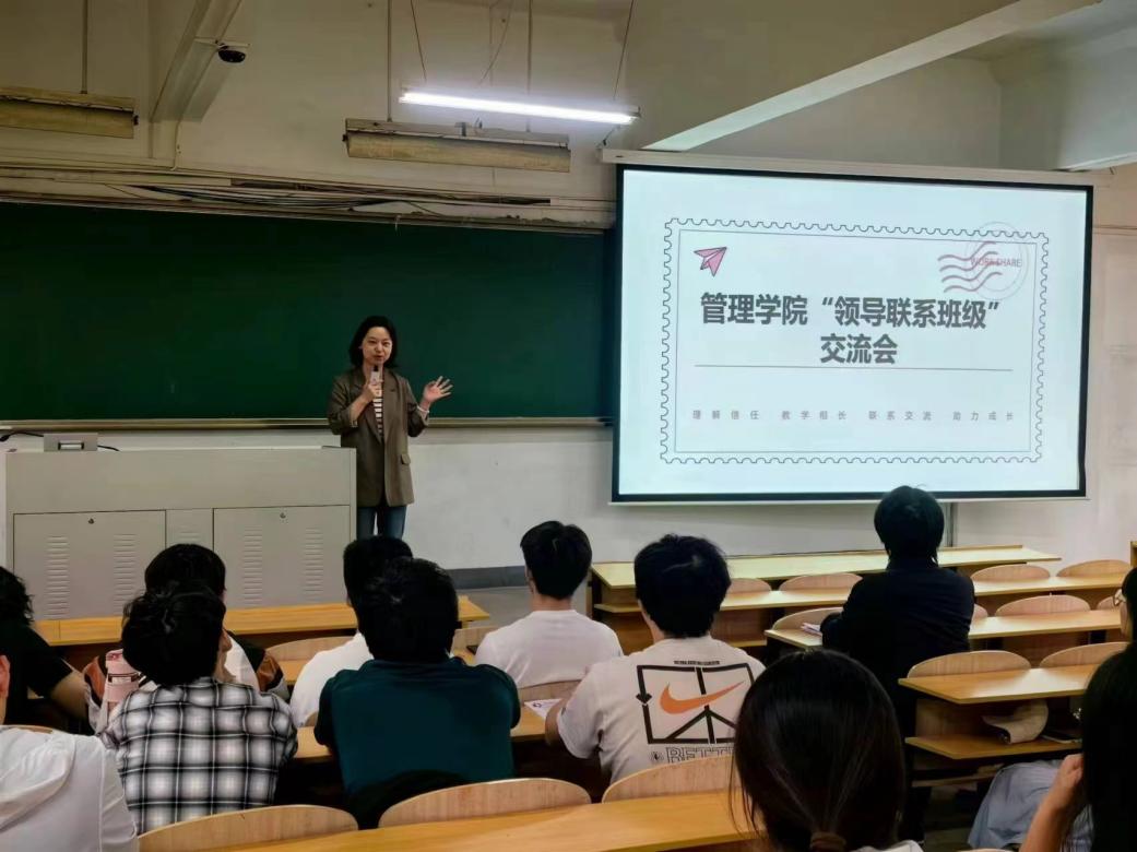 5月9日上午11点,太阳集团tcy8722B221312班在无线楼第一教室开展“公司领导联系班级”主题交流会。公司分团委邀请经理助理、财务管理系副主任王娟教授主讲。B221312 电子商务专业全体员工参加。