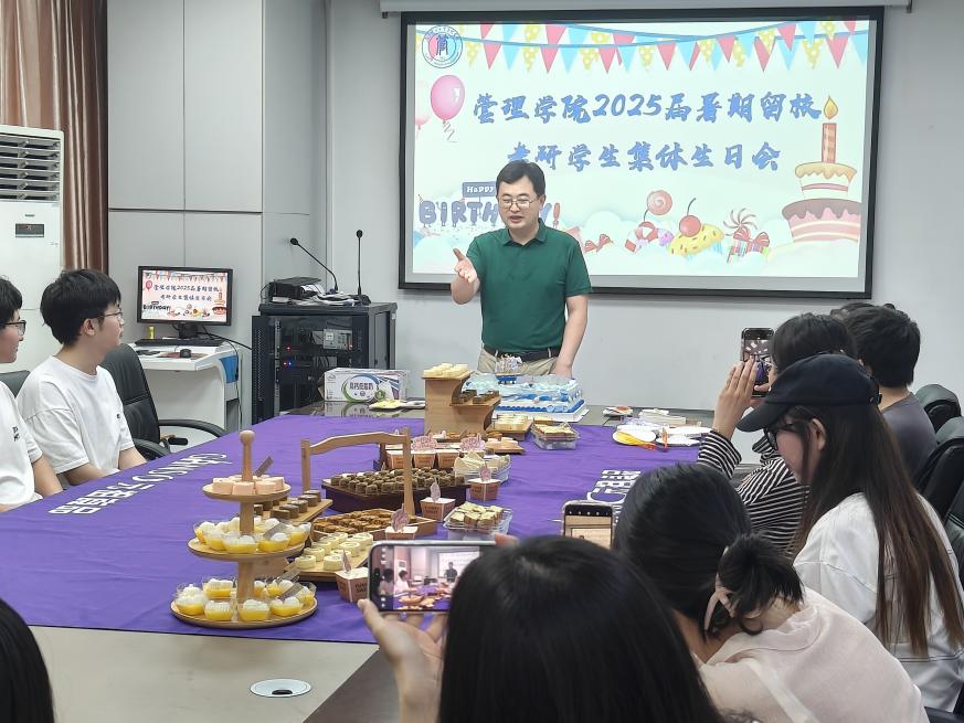 暑期留校考研员工集体生日会环节,公司党委副书记、副经理郭强对同学们在炎炎夏日中坚持复习、勤奋刻苦的精神给予关心和肯定,希望同学们抓住暑假黄金备考时间,科学合理规划,有重点、有步骤地开展学习,同时注意规律作息和健康饮食,加强体育锻炼、保持身心健康。活动最后,毕业班辅导员李一鸣、蔡珺为七月和八月过生日的寿星们送上美好祝福,分享美味的生日蛋糕。