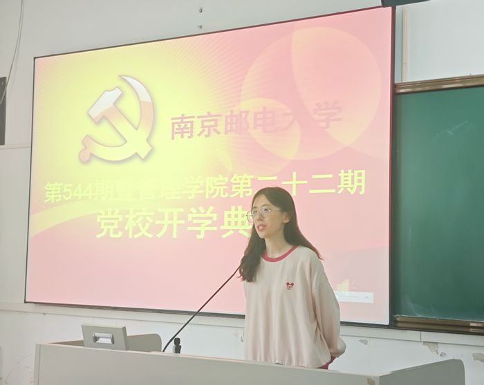全体肃立奏唱国歌后,开班典礼拉开序幕。学员代表杨舒雯同学发言,她表示入党积极分子应深入学习贯彻党的二十大精神,以党员的标准严格要求自己。认真学习,积极思考。坚定不移听党话、跟党走,怀抱梦想又脚踏实地,敢想敢为又善作善成,立志做有理想、敢担当、能吃苦、肯奋斗的新时代好青年。郭强书记在讲话中对参加本期培训班的学员表示欢迎和祝贺,他希望全体成员通过系列课程的学习进一步提高思想认识,端正入党动机,珍惜集中学习的机会,不断提升自己的理论水平。他要求学员们在理论学习的基础上积极参加社会实践,以实际行动积极向党组织靠拢。最后,唐捷老师对本期培训班的具体安排和要求作了详细介绍。