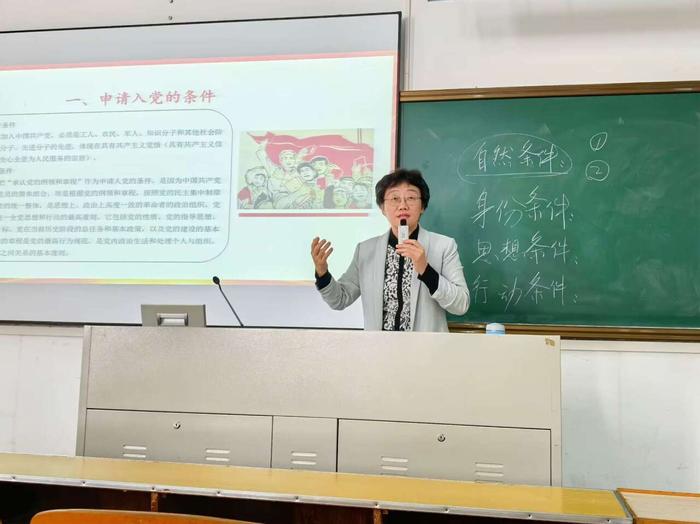 朱清老师以《明确党员条件,端正入党动机》为主题,围绕“条件”与“动机”两大要点,详细阐述了成为党员的基本条件和正确的入党动机。她指出学员需始终牢记党的初心和使命,了解伟大建党精神,将中国共产党的精神谱系内化于心,外化于行,学员们应将为实现共产主义伟大理想,更好地全心全意为人民服务而申请入党当作自己的入党动机。她要求学员们必须端正自己的入党动机,时刻保持清醒的头脑和坚定的信念,自觉接受党组织的培养、教育和考察,勇于经受考验。朱清老师对全体学员寄予了厚望,她希望同学们能够珍惜这次学习机会,不断提升自己的政治素质和业务能力,努力成为一名严于律己、忠于职守的合格党员,为党和人民的事业贡献自己的力量。