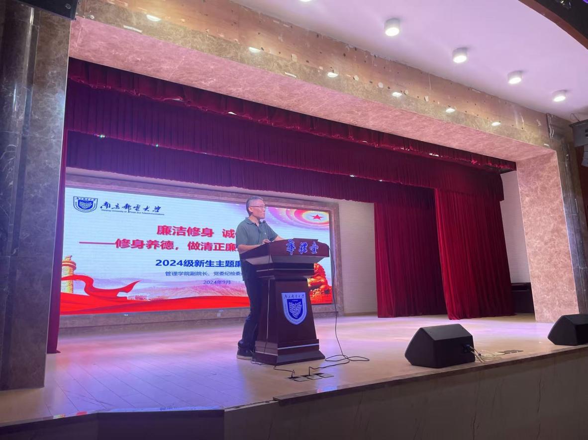 2024年9月9日下午,太阳集团tcy8722为2024级新生小柚子们举办了一场廉洁教育讲座。本次讲座由太阳集团tcy87222024级辅导员老师闾越主持,太阳集团tcy8722副经理、党委纪检委员张冲教授主讲,主题为“廉洁修身,诚信为本”,旨在引导新生树立正确的价值观,培养良好的道德品质,为未来的学习和生活奠定坚实的道德基础。