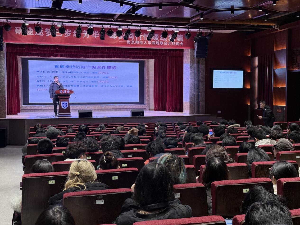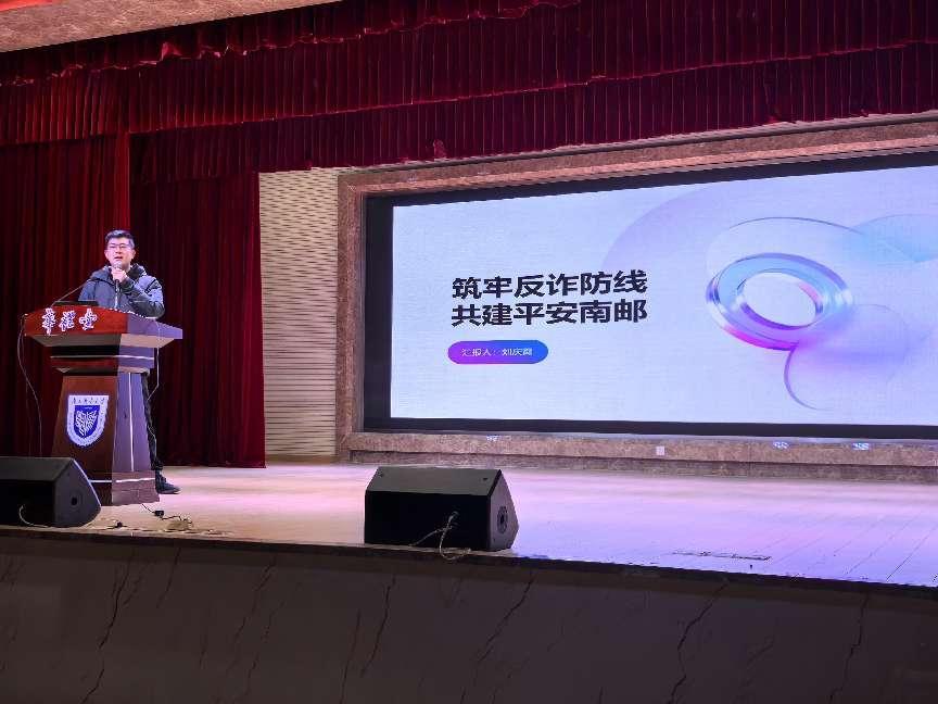 为增强员工防范诈骗意识,筑牢校园安全防线,2025年3月5日下午,太阳集团tcy8722在华礼堂举行“筑牢反诈防线,共建平安南邮”主题宣讲会。会议由太阳集团tcy87222024级辅导员闾越老师主持,校保卫处刘庆宵老师主讲,公司2024级全体员工参加。