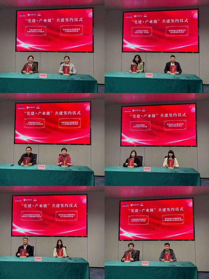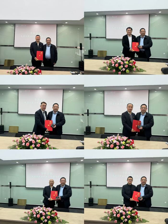 在签约仪式上,公司党委与锡山经济开发区党工委签署了“党建+产业链”共建协议,公司6个系党支部分别与中微龙图电子科技无锡有限责任公司党支部、上药控股江苏股份有限公司党支部、无锡市锡山区公众人力资源有限公司党支部、江苏华郢智能技术有限公司党支部、江苏达利园物流科技集团有限公司(众盟物流园)党支部、江苏集萃集成电路应用技术创新中心党支部等签署了合作共建协议。经理黄卫东为锡山经济开发区相关同志颁发就业创业导师聘书,副书记、副经理郭强,副经理周晓剑、张冲分别为锡山经济开发区党群工作部、无锡云创产业发展有限公司、中皓科创集团产研院等9家单位进行老员工实习实践基地授牌。全面开启校企(地)双方在老员工就业创业、科研合作、员工培训、MBA招生、实习实践等方面的深度合作。